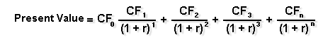 (When using this formula, CFx = cash flow in period x, n = the number of periods, and r = the discount rate.)
